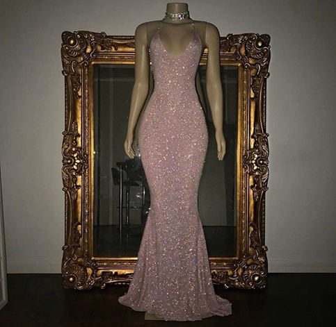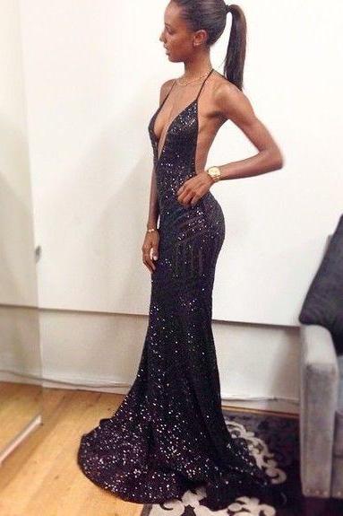 Sequin Sexy Backless Prom Dress V Neck Prom Dress Sparkle Prom
