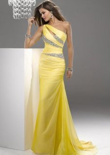 Yellow Long Tight Sequin One Shoulder Cutout Pr