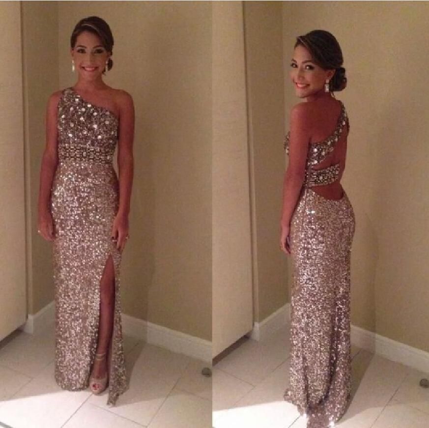 Dress Gold Sequins Prom Glitter Beautiful Long Tight Slit