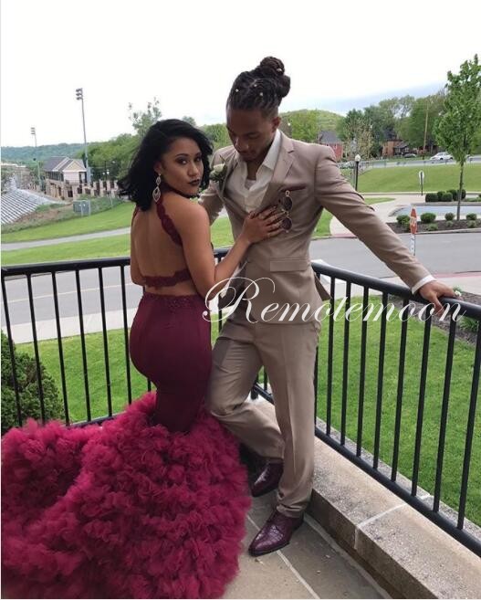 Burgundy 2 Pieces Prom Dresses Mermaid Evening Formal Dress With