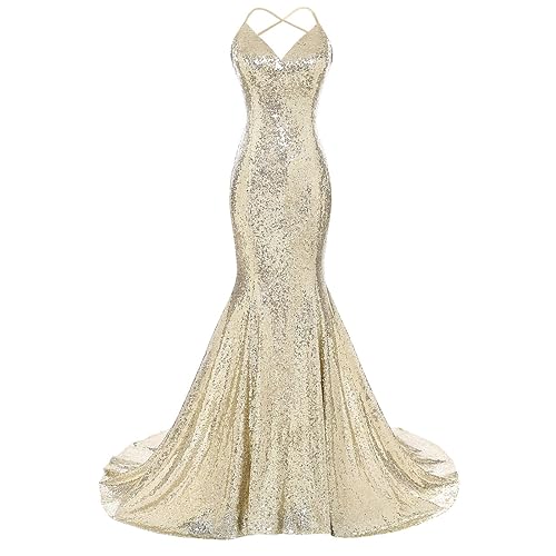 Rose Gold Sequin Plunging V Neck Mermaid Prom Dress Lunss