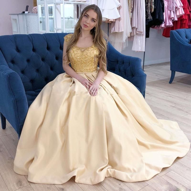 Elegant Champagne Prom Dresses 2019 A Line Princess Scoop