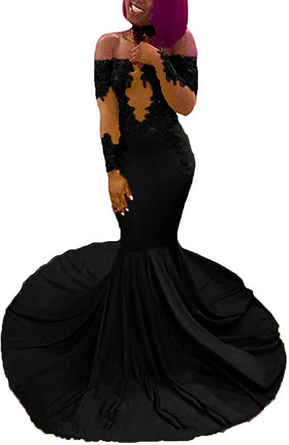 Black Lace Sheer Long Sleeve Mermaid Prom Dress Lunss