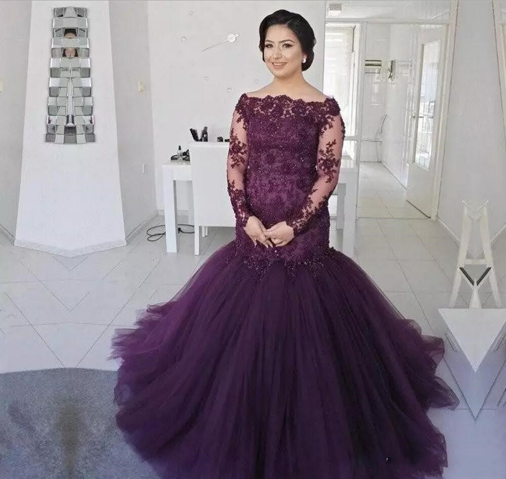 2018 Plus Size Bateau Neckline Mermaid Prom Dresses Long Sleeves