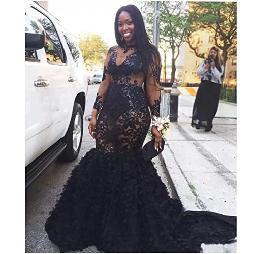 Black Mermaid Lace Long Sleeve High Neck Plus Size Prom Dresses Uk