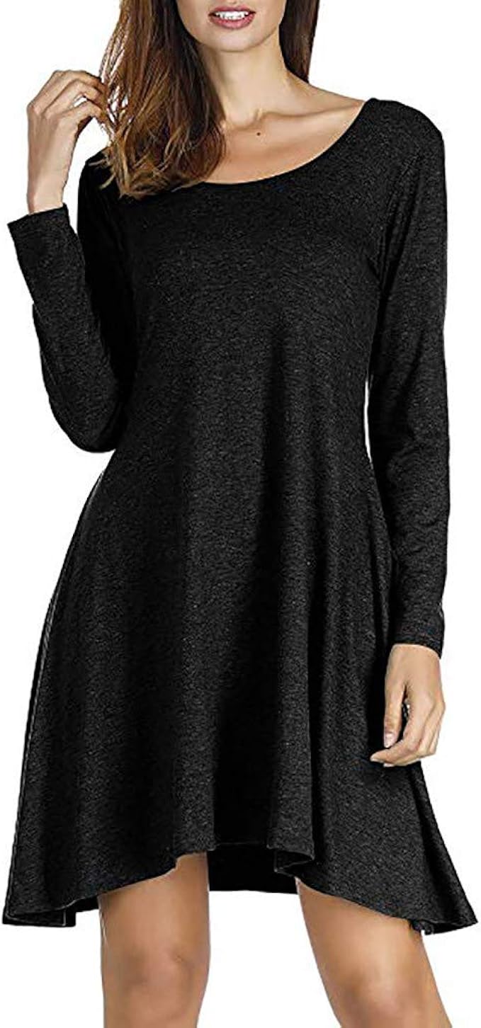Npradla Dresses Women Casual Solid Loose Long Sleeve Pockets Swing