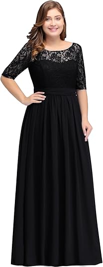 Black Lace Plus Size Prom Dresses With Half Sleeves Off The