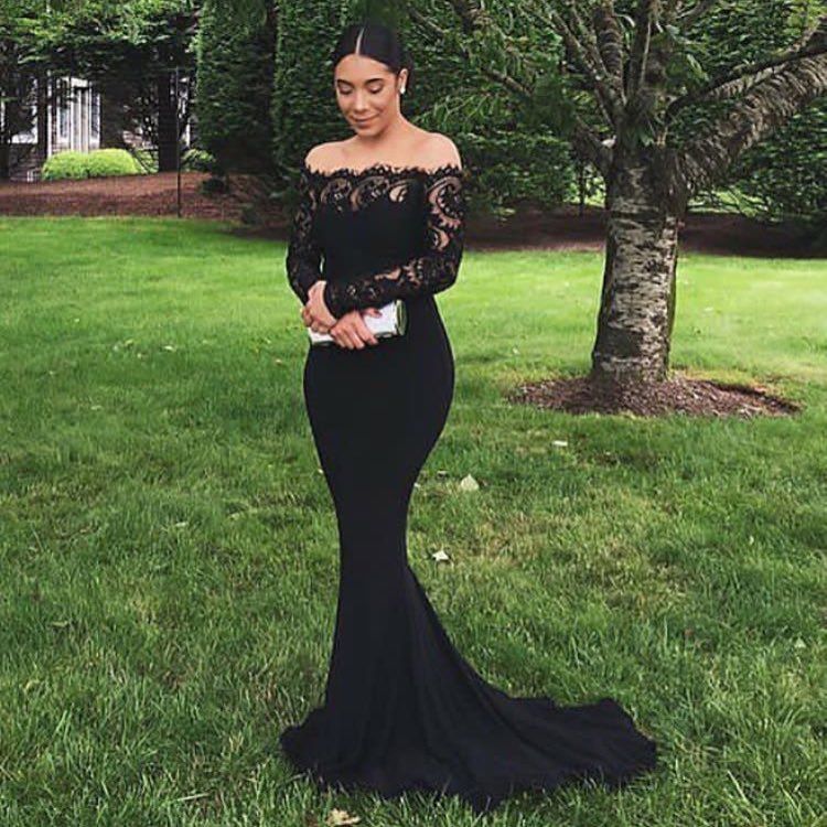 Black Full Lace Prom Dresses South African Trumpet Long Sleeves