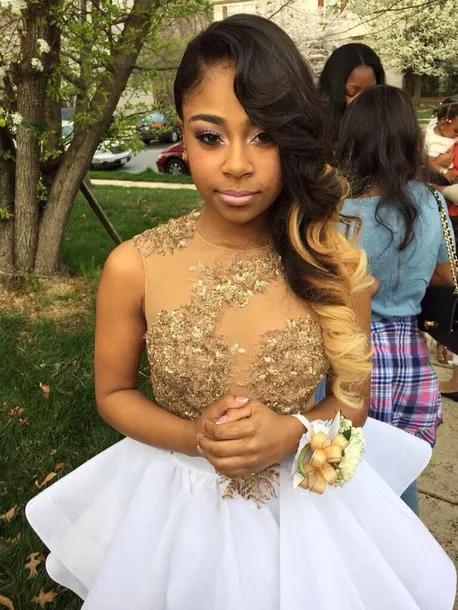 Gold And White Sheer Appliques Short Tight Homecoming Dresses 2016