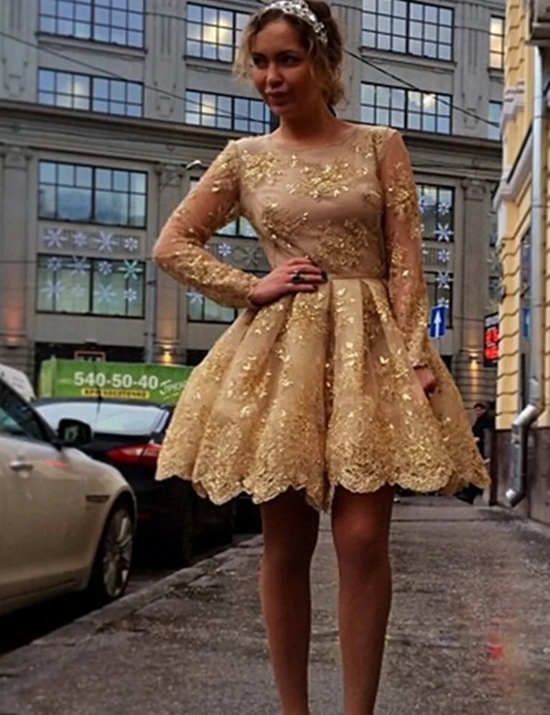 Scoop Above Knee Long Sleeve Homecoming Dresses Appliques Tulle