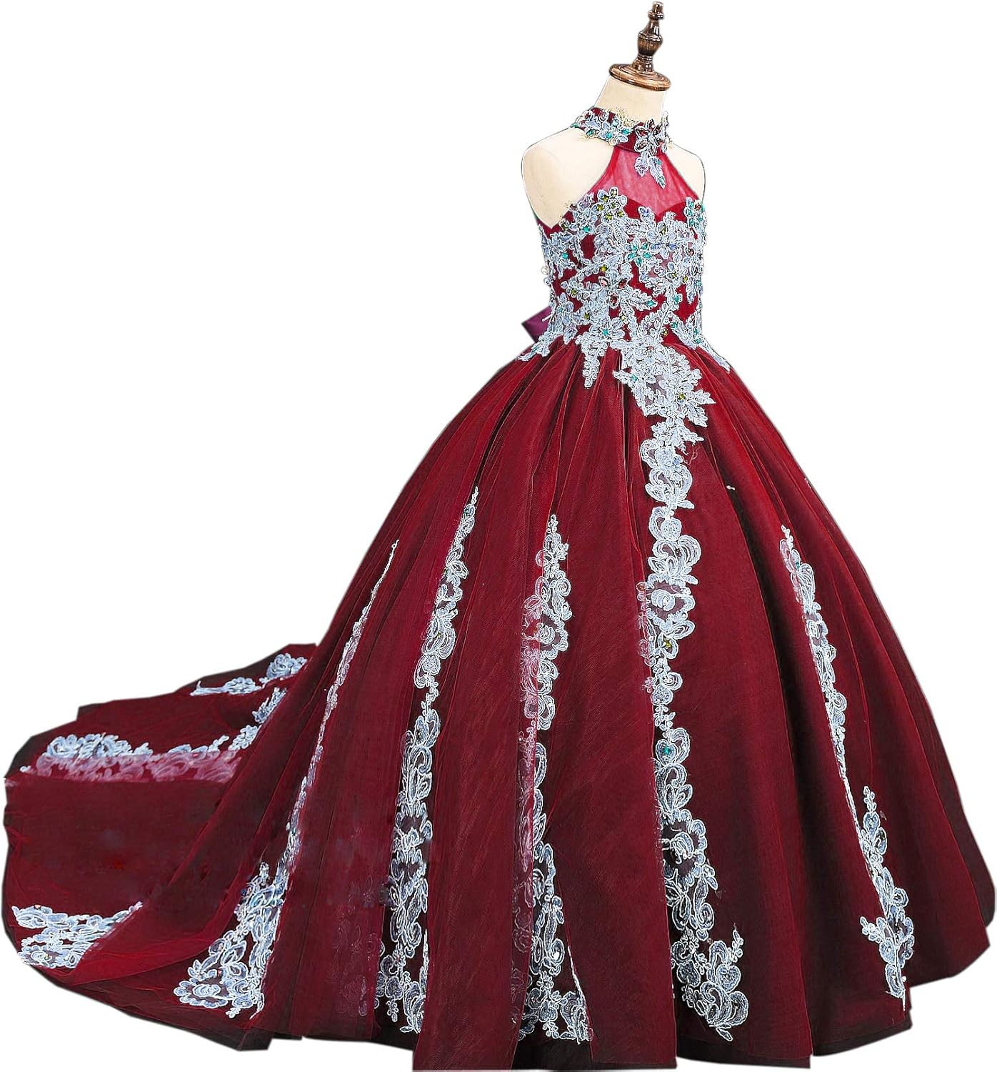 Burgundy Halter Plunging Tulle Ball Gown Prom Dress Lunss
