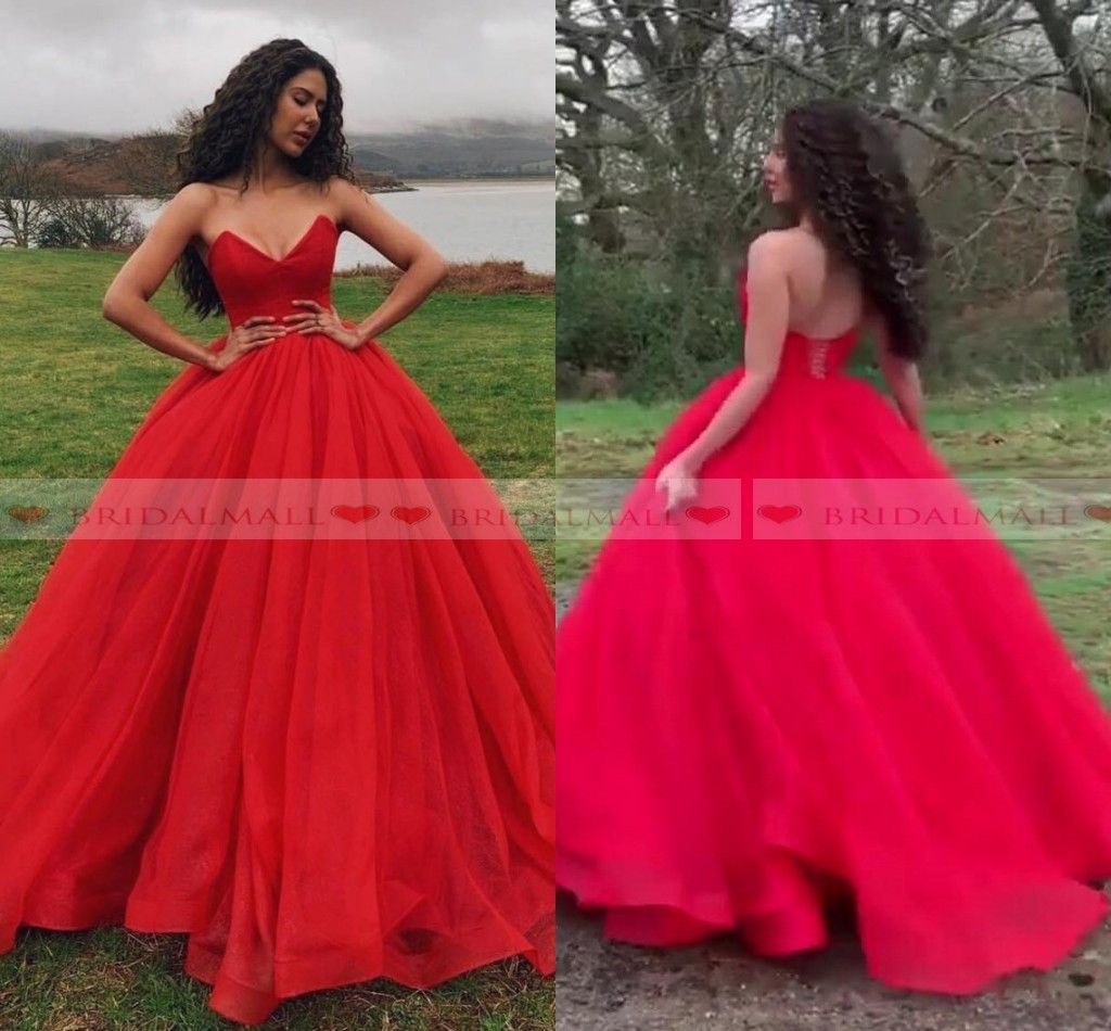 Hot Promo Ed5d Red Ball Gown Prom Dresses 2019 Sweetheart Tulle