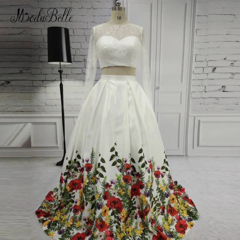Modabelle 2018 Floral Printed White Prom Dresses Two Piece Long