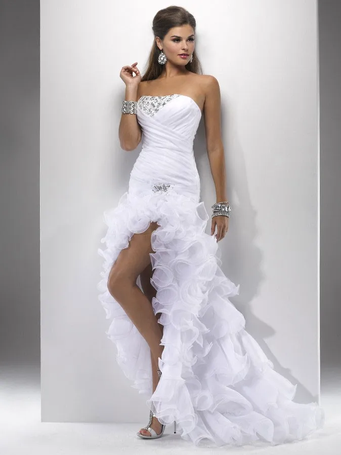 Stunning Hi Lo Prom Dress Strapless Short Front Long Back White