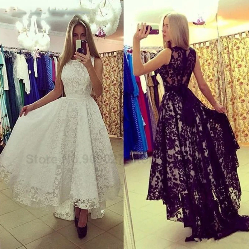 2016 Black White Lace Prom Dresses Short Front Long Back Dubai