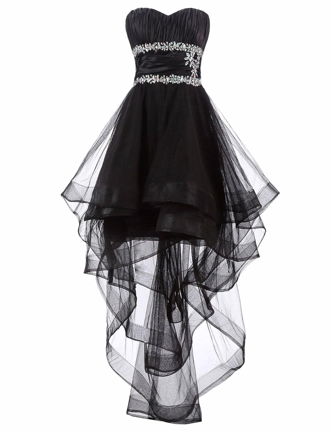 Angelsbridep High Low Crystal Prom Dresses Strapless Chiffon Front