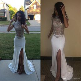 Elegant White Short Front Long Back Prom Dresses Black Girl Jewel