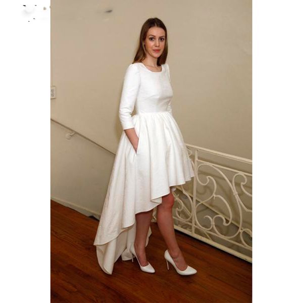 Modest 2019 High Low Prom Dresses With 3 4 Sleeves Jewel Neck