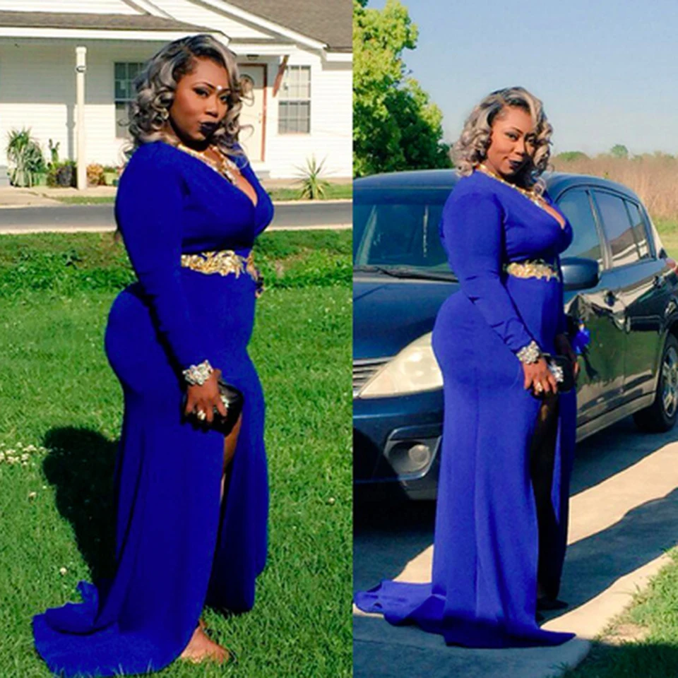 82 Long Sleeve Plus Size Long Sleeve Royal Blue Prom Dresses