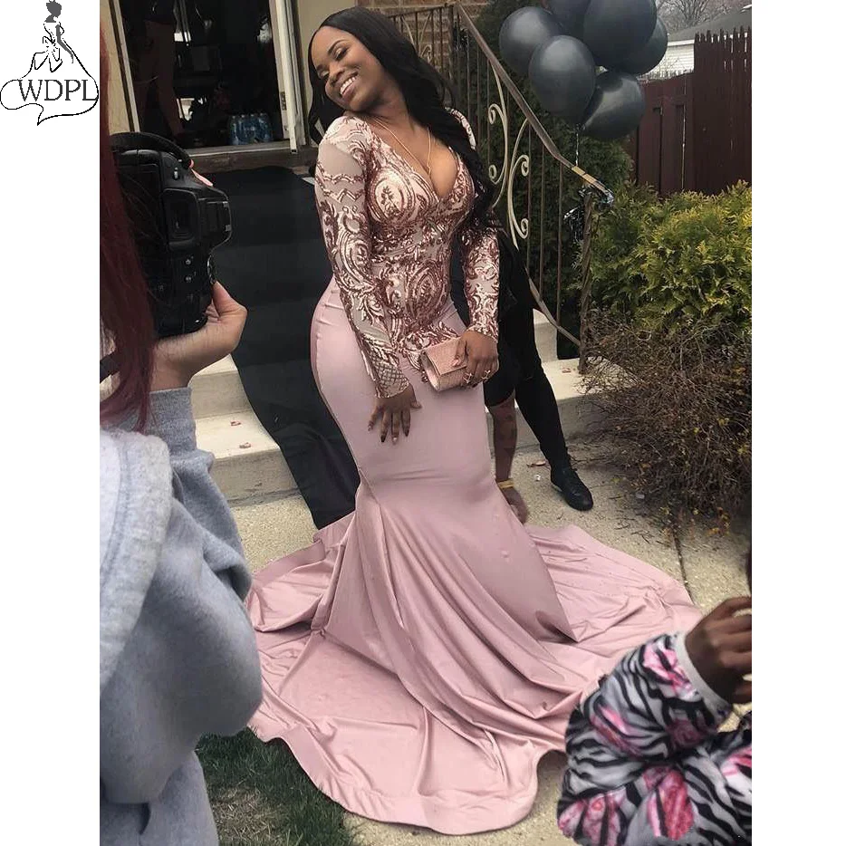 Rose Gold Long Sleeve Prom Dresses 2019
