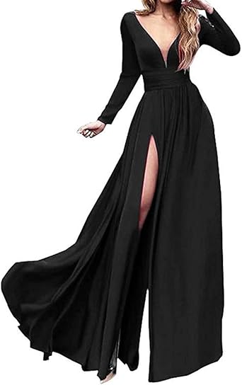 Saroulu Women S Deep V Neck High Slit Prom Dresses Long Sleeves
