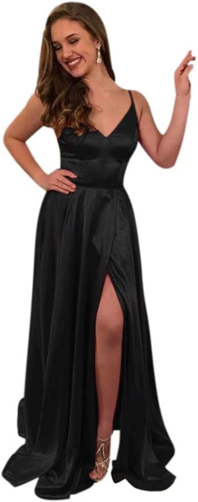 Yunuo Women S A Line Spaghetti Straps Deep V Neck Side Slit Long