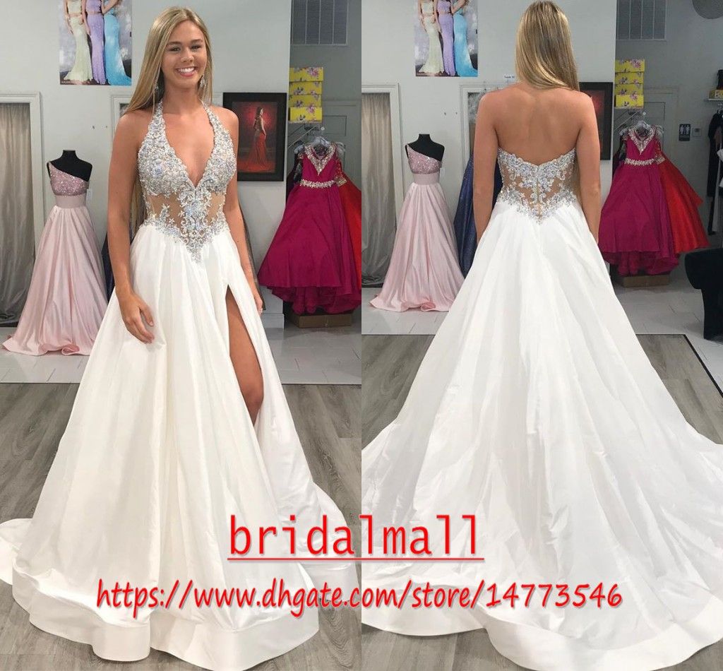 Sexy White Two Pieces Prom Dresses With High Side Slit 2019 A Line