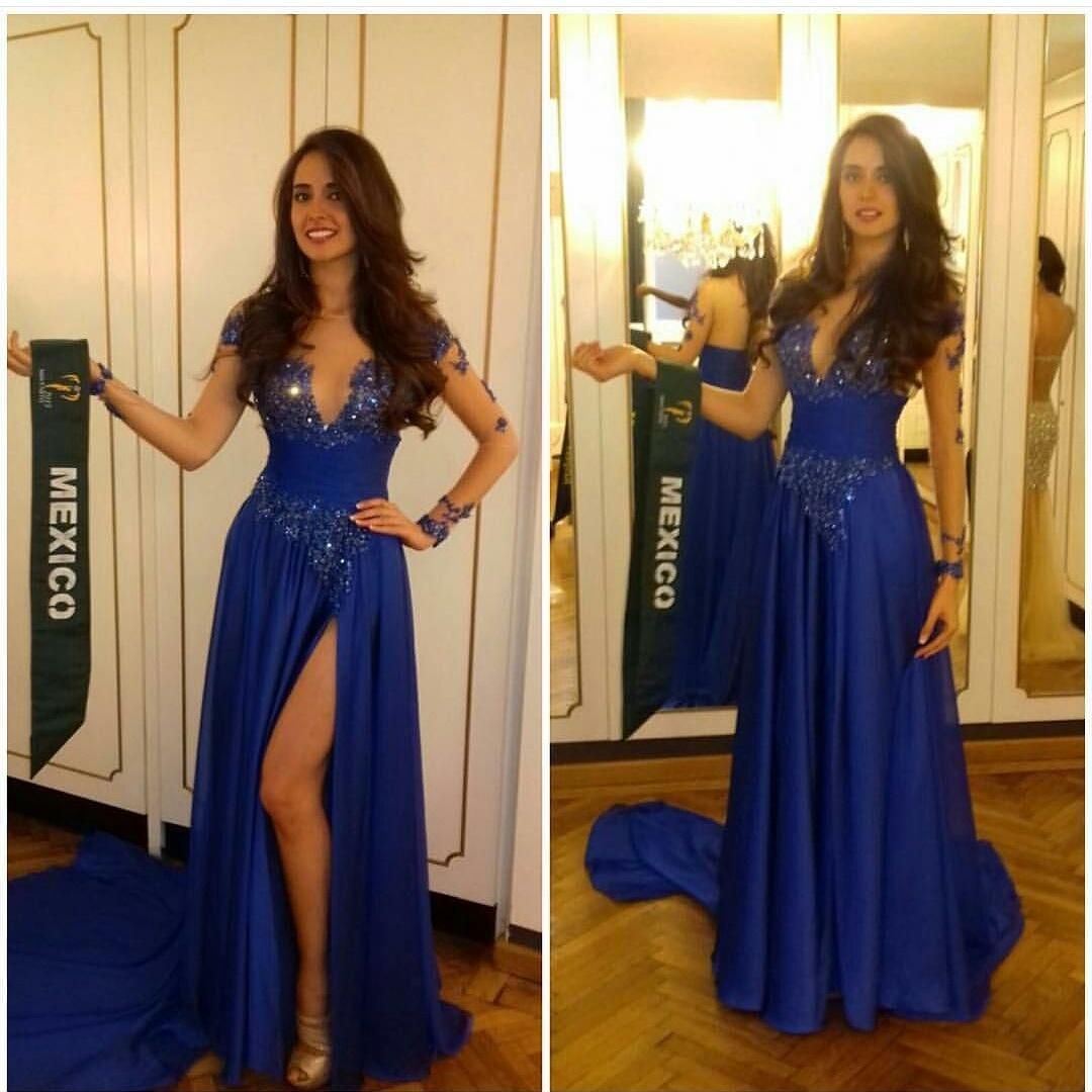 Arabic Royal Blue Split Robe De Soiree Sexy Illusion Jewel