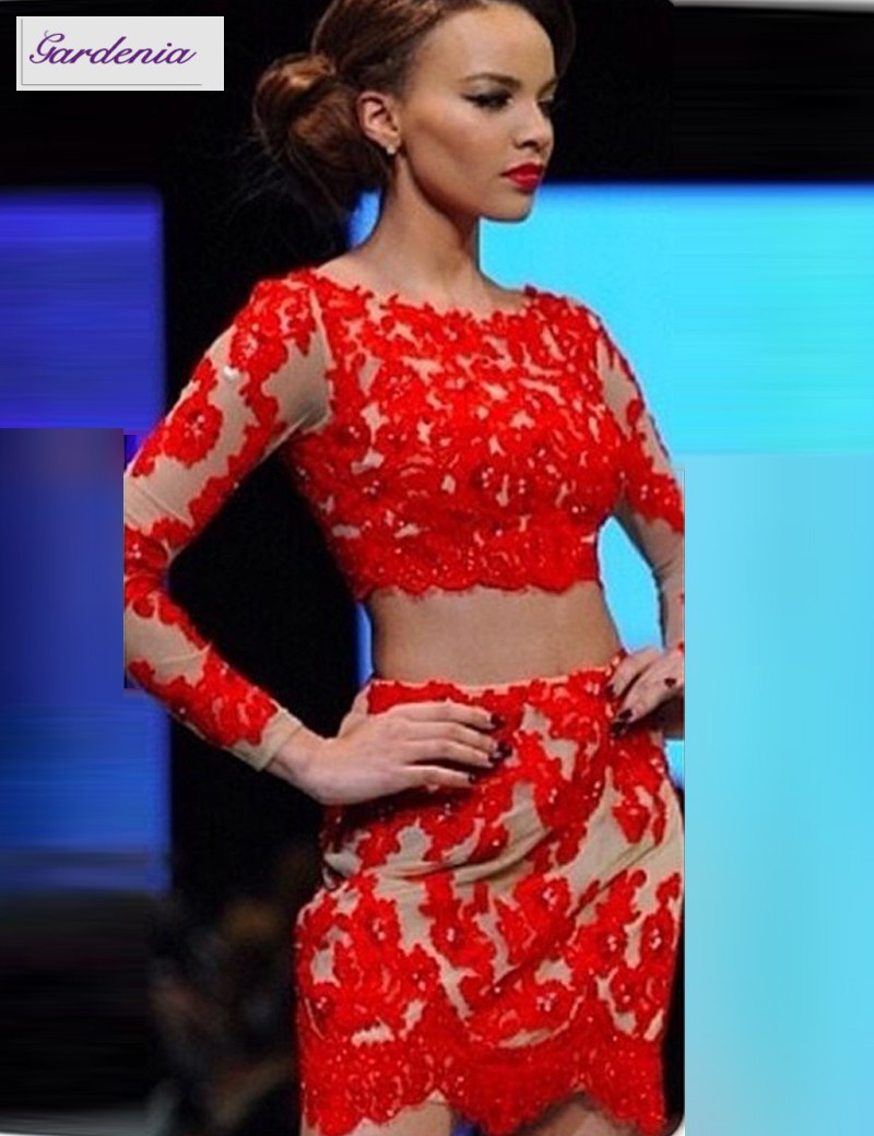 Long Sleeve Charming Lace Two Pieces Tight Cheap Homecoming Prom