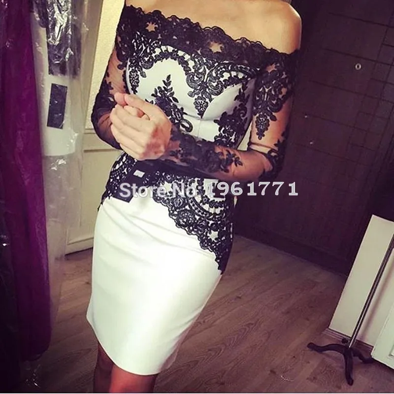 Cheap White Long Sleeves Cocktail Dress Evening Gowns Off The