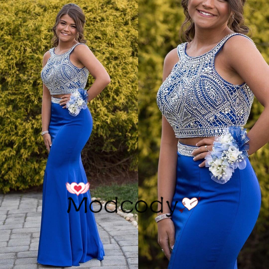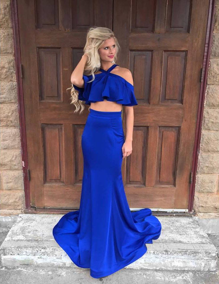Two Piece Prom Dresses Royal Blue Prom Dresses 2 Piece Prom Gowns