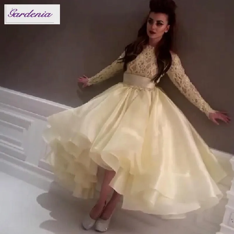 Long Sleeves White High Low Lace Prom Dresses Puffy Off The