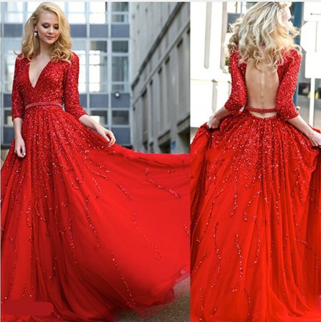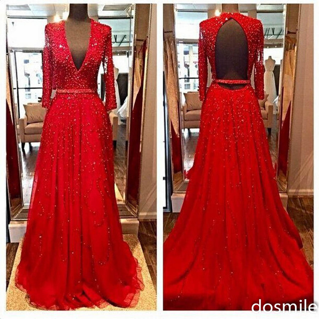 Elegant Red Prom Dresses Sexy Open Back Evening Dresses 2016 Real