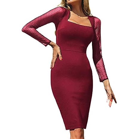 Stlyq Women Dress Elegant New Mesh Long Sleeve Slim Fit Solid