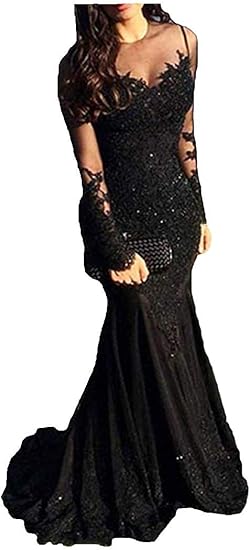 Black Prom Dresses Lace Prom Dresses Long Sleeve Prom Dresses
