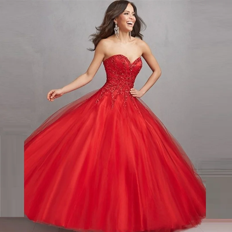 2020 Sweetheart Beaded Ball Gown Sweet Fairy Red Quinceanera Dress