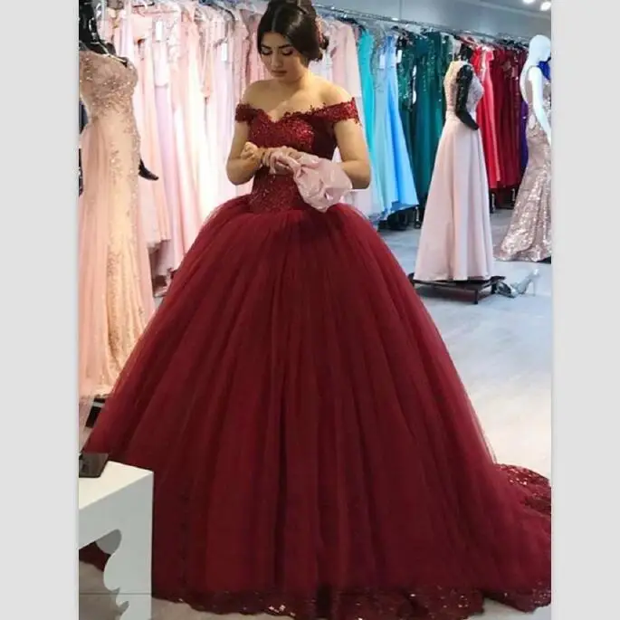 Robe De Soiree 2019 Burgundy Red Puffy Prom Dresses Ball Gowns