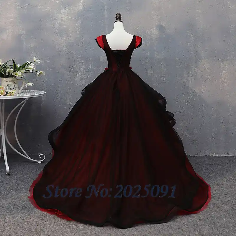 Hot Sale Black Red Ball Gown Quinceanera Dresses 2019 Long Prom