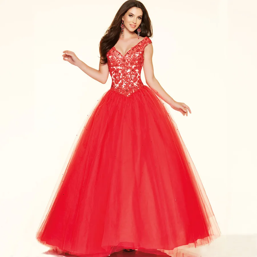 Red Ball Gown Prom Dresses 2019 New Elegant Off Shoulder Appliques