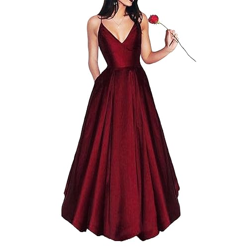 Sexy Backless 2019 Pink Red Prom Dresses A Line V Neck Long Party