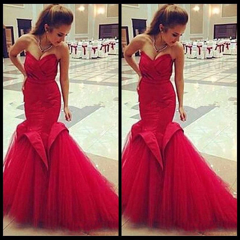 Long Red Prom Dresses Fluffy Sweetheart Mermaid Evening Dress