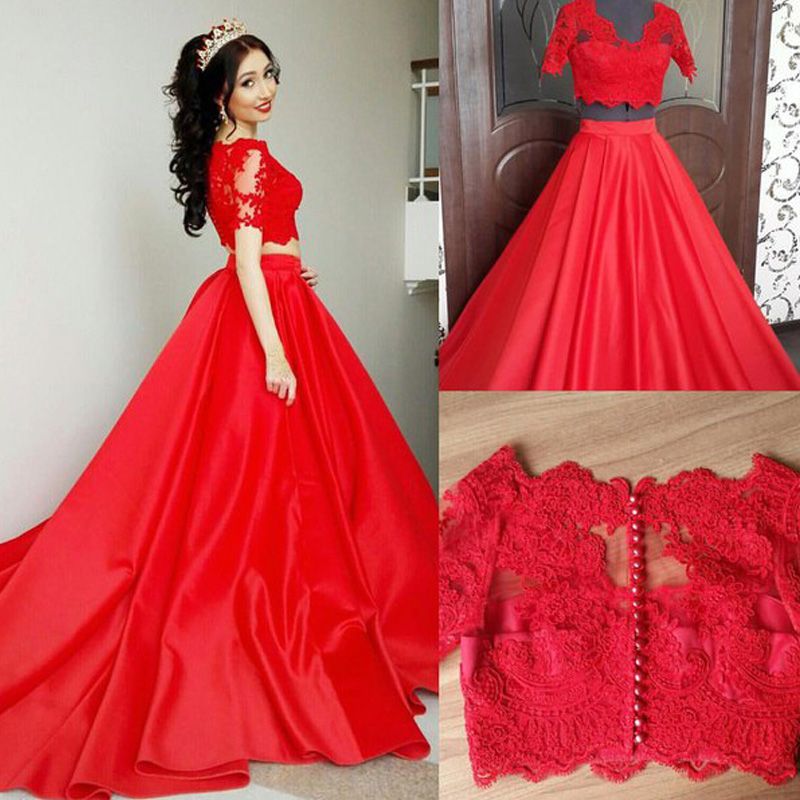 2 Piece Red Prom Dresses Long Sexy Prom Gowns New Style 2 Pieces