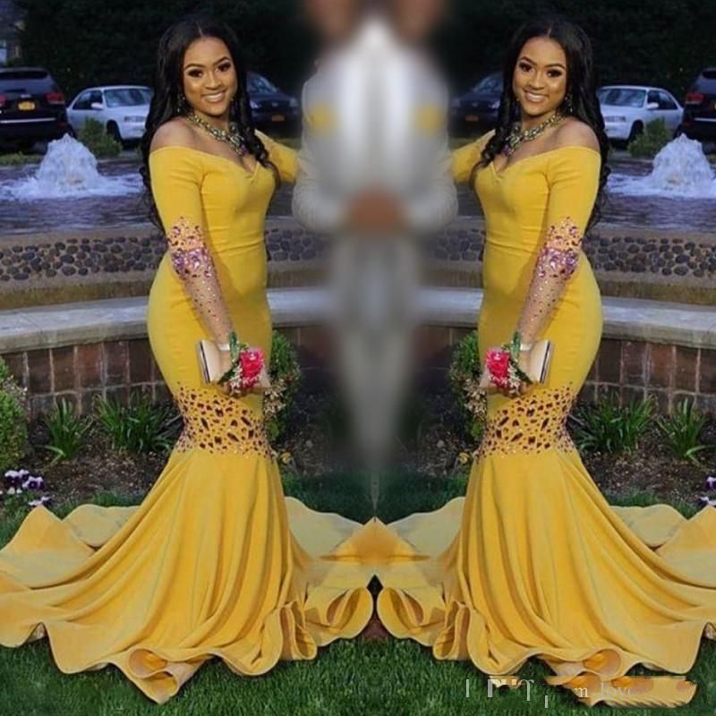 Elegant Yellow Prom Dresses 2018 Formal Off The Shoulder Mermaid