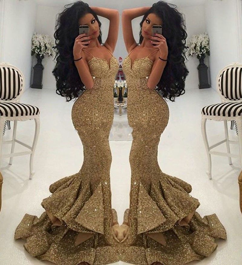 Sexy Spaghetti Mermaid Sequin Prom Dresses Long Hiprom