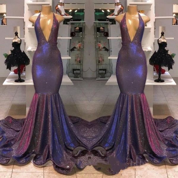 Sparkle Reflective Purple Sequined Prom Dress Real Image Deep V