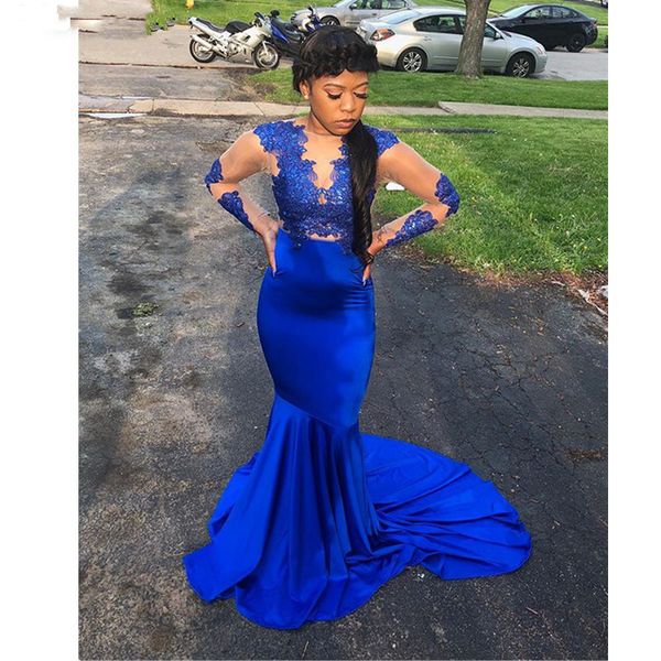 Royal Blue Black Girls Mermaid Long Prom Dresses 2020 Long Sleeves