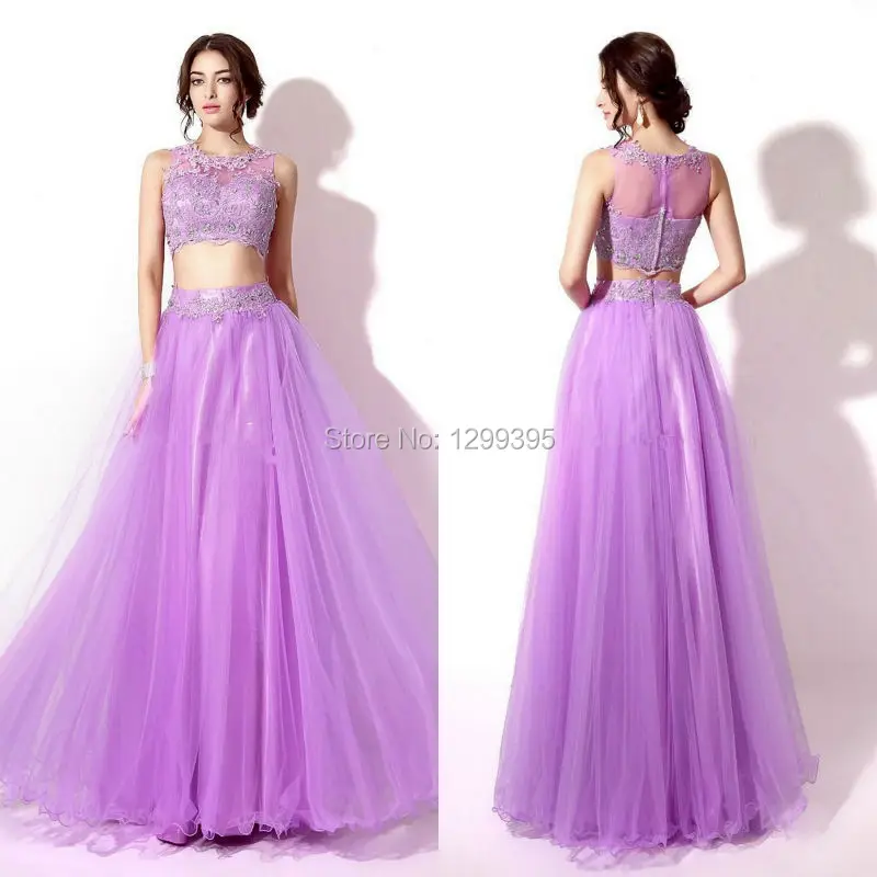 Light Purple Prom Two Pieces Dress Long Gown Sleeveless Custom