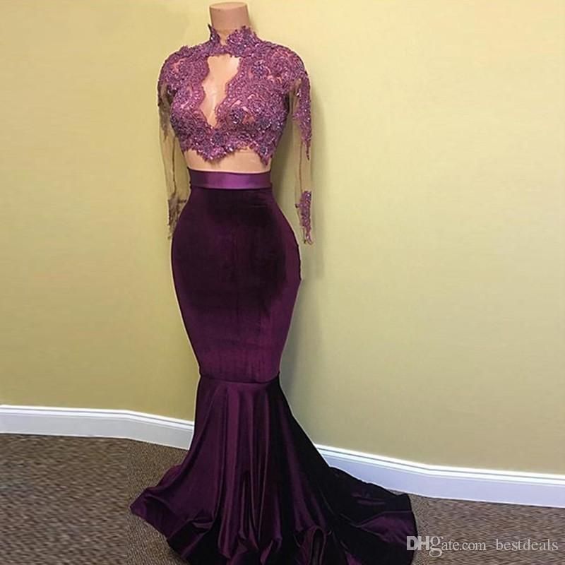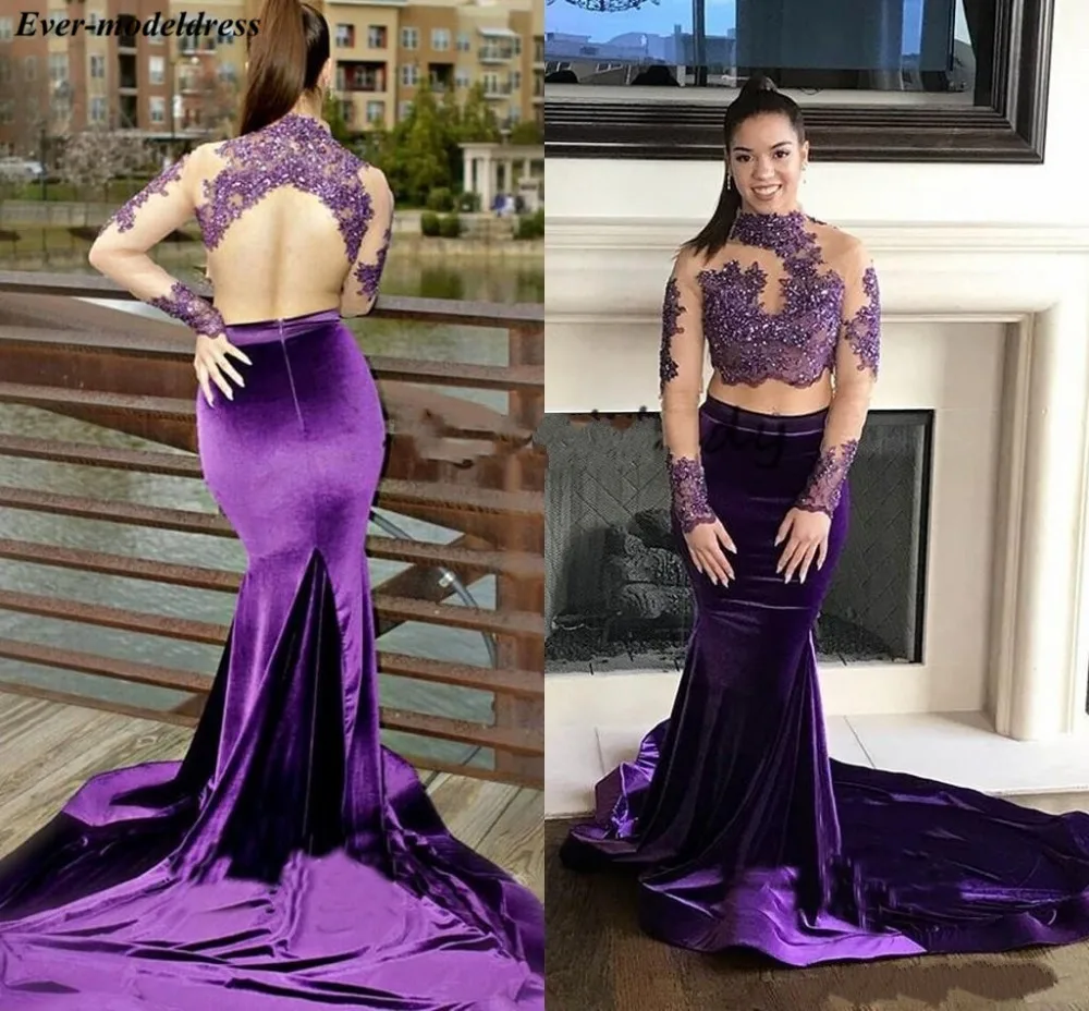 Elegant Purple Velvet Two Piece Mermaid Prom Dresses 2017 Robe De