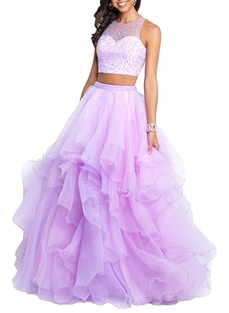 Long Dark Purple Two Piece Prom Dress Amazon Com