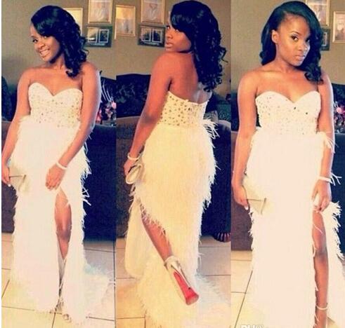 Long Beaded Feather Black Girl Prom Dresses Sweetheart Rhinestone